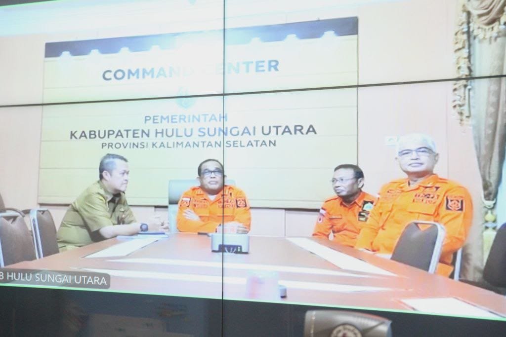 Keterangan Gambar : Kondisi Banjar balangan dan Rakor Kesiapsiagaan dan Penanggulangan Bencana Banjir, Cuaca Ekstrem, dan Tanah Longsor secara virtual dari Command Center Pemprov Kalsel, Selasa (30/12/2025).