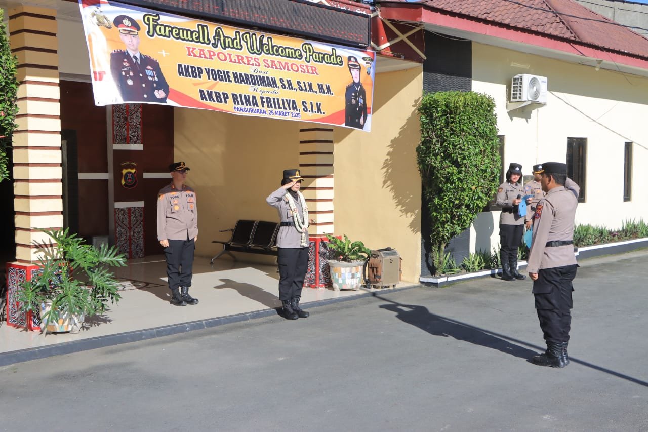 Keterangan Gambar : AKBP Rina Frillya disambut di Polres Samosir, Rabu (26/3/2026)