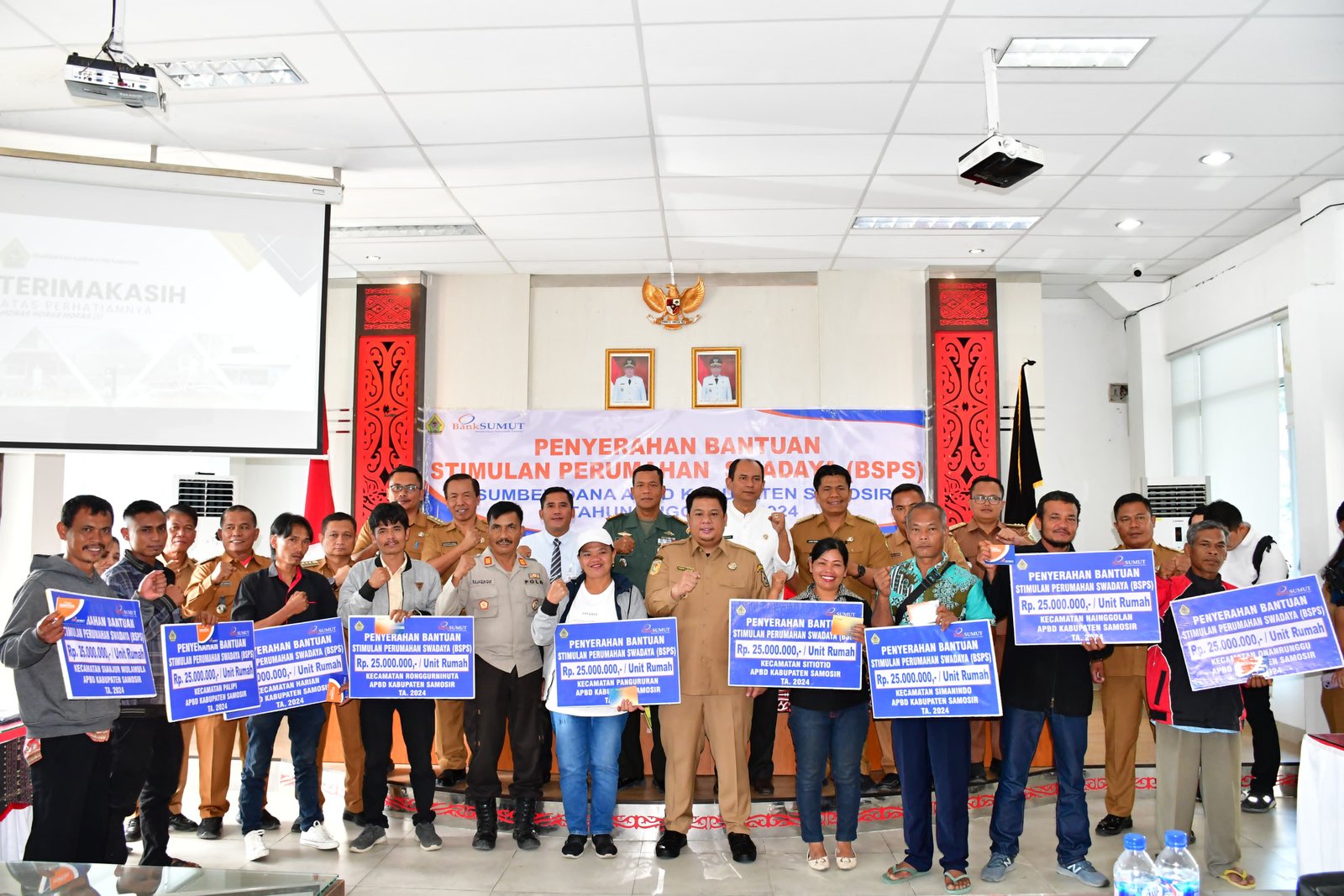 Bantuan sumber dana APBD Kabupaten Samosir sebesar 6,7 milyar diserahkan kepada 268 penerima manfaat. Per unit rumah dengan biaya 25 juta rupiah dalam bentuk buku tabungan. Akan dicairkan dalam 2 tahap dan akan dibantu dilapangan dengan 4 fasilitator. Bupati Samosir Vandiko T. Gultom menyampaikan program BSPS merupakan bentuk perhatian kepada masyarakat untuk dapat merenovasi/ bedah rumah. Bantuan bersifat stimulan ini diharapkan menjadi pendorong bagi masyarakat untuk memiliki hunian yang layak."Kami beri bantuan sebagai bentuk perhatian kepada masyarakat untuk mendapatkan rumah layak huni. Ini paling besar yang bersumber dari APBD diberikan kepada masyarakat" kata Vandiko.