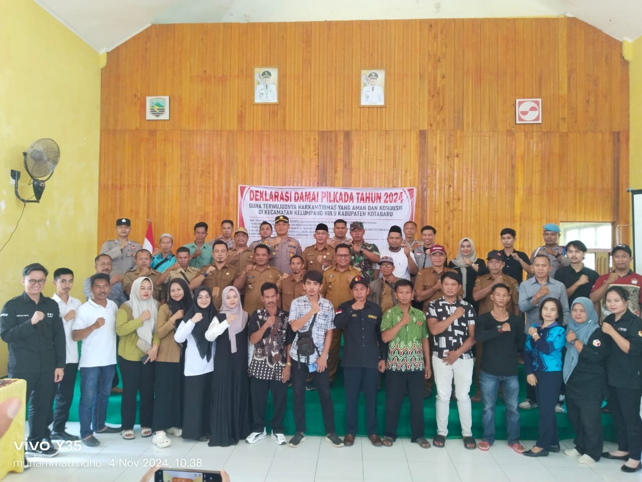 KOTABARU, BORNEOPOS.COM – Camat Kelumpang Hulu menghadiri Deklarasi Pemilu Damai 2024 di Aula Cantung Barakat Kecamatan Kelumpang Hulu, Senin (04/11/24).