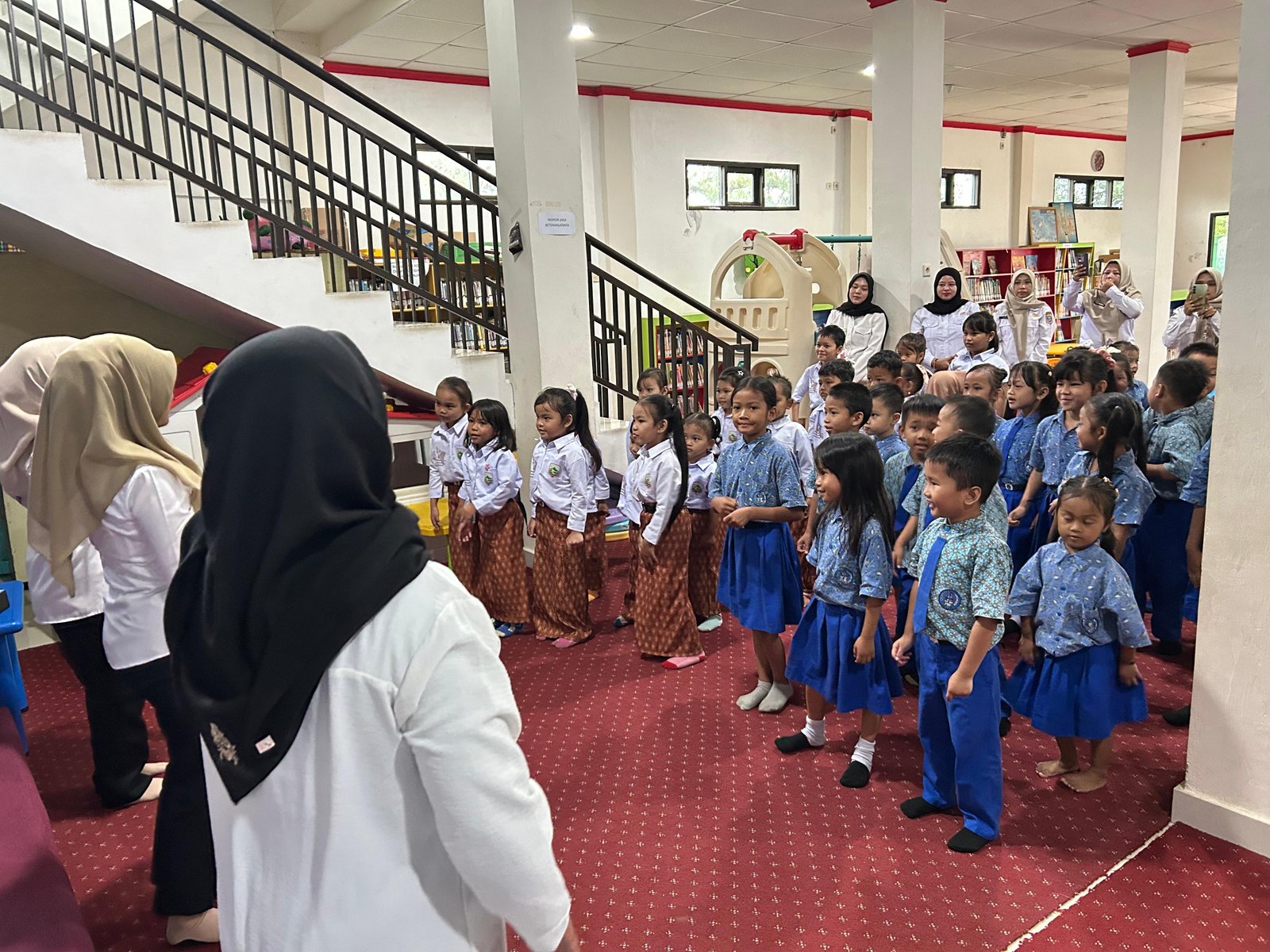 Di akhir kegiatan, anak-anak juga diajak mengikuti sesi membaca bersama sebagai bentuk pembiasaan budaya literasi sejak dini.