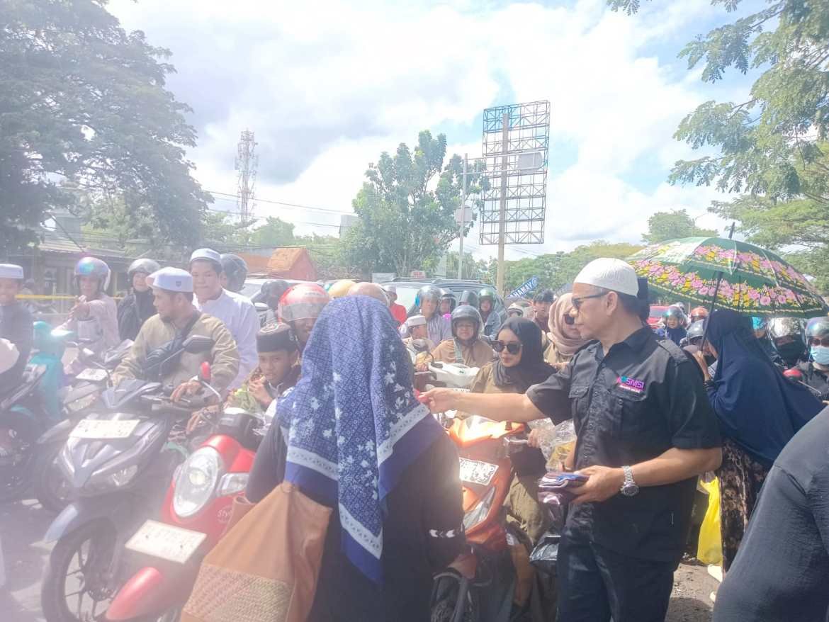 Banjar, Borneopos.com - SMSI Kalsel turut menyambut kegiatan 5 Rajab atau haul Guru Sekumpul dengan membagikan bingkisan sovenir kepada jemaah yang melintas di Jalan A Yani KM 15, Gambut, Minggu (28/12/2025).