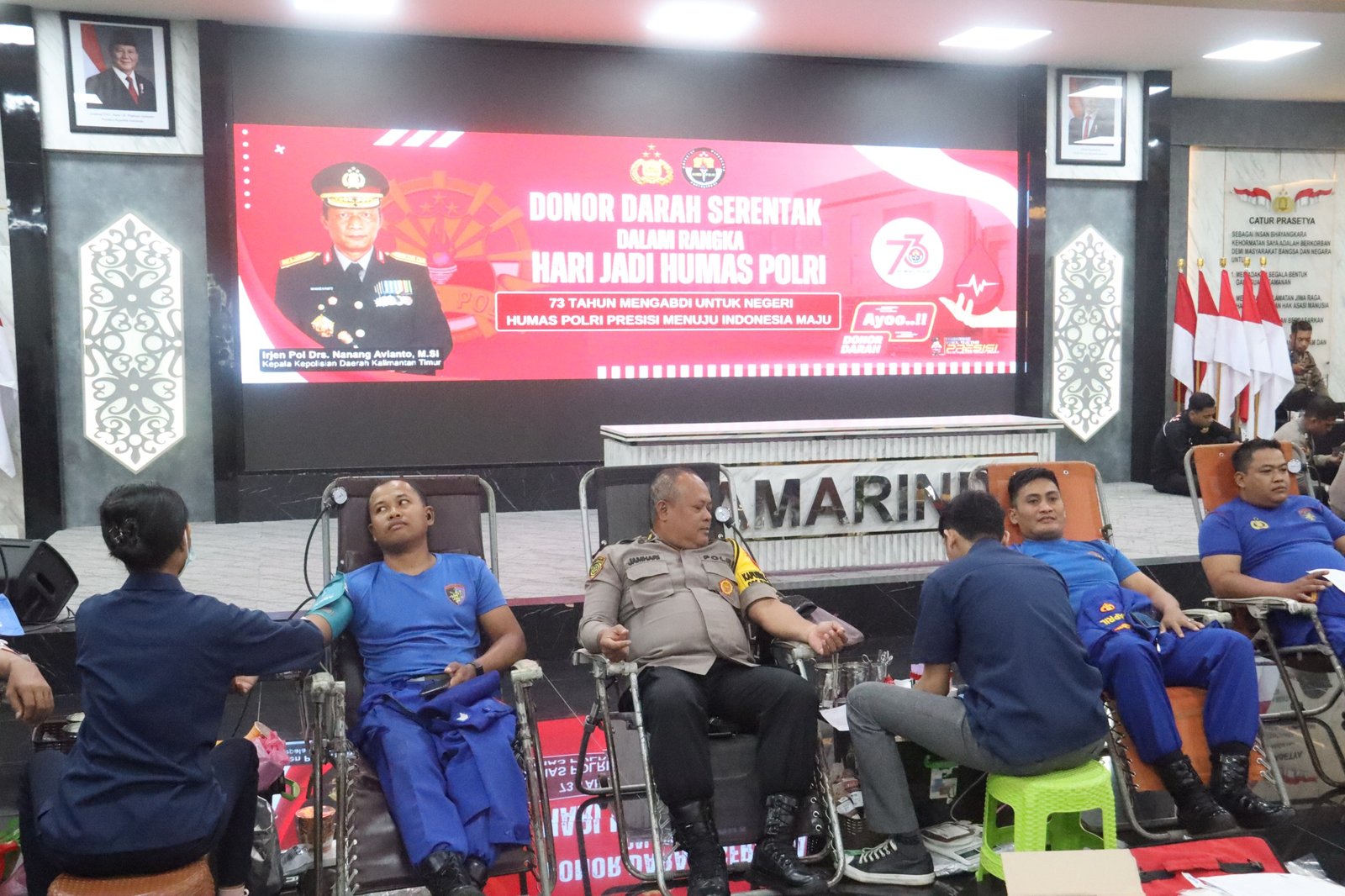 Kegiatan donor darah dengan tema, “Humas Polri Presisi Menuju Indonesia Maju”, dihadiri oleh jajaran kepolisian Polresta Samarinda serta awak media.