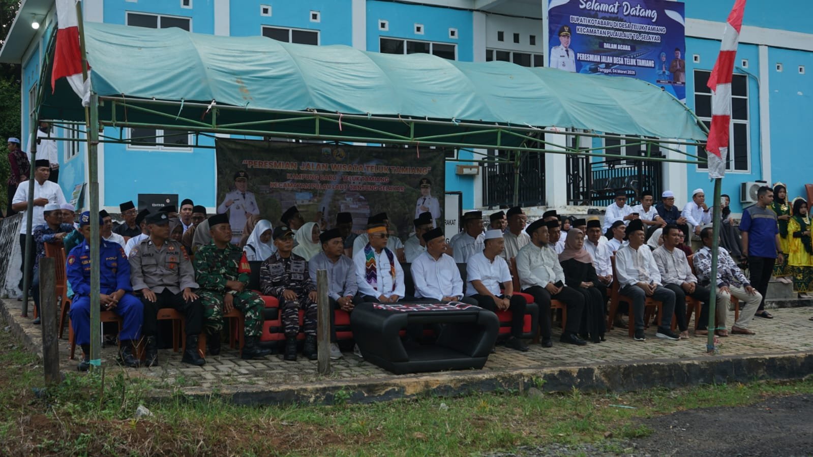 Peresmian dilakukan langsung oleh Bupati Muh Rusli yang ditandai dengan pengguntingan pita sebagai simbol resmi dibukanya akses jalan tersebut. Kegiatan ini turut dihadiri para asisten dan kepala SKPD di lingkup Pemkab Kotabaru, Camat Pulau Laut Barat, Camat Pulau Laut Tanjung Selayar, unsur Forkopimca, para kepala desa se-Kecamatan Pulau Laut Barat dan Pulau Laut Tanjung Selayar, tokoh agama, tokoh masyarakat, serta tamu undangan lainnya.