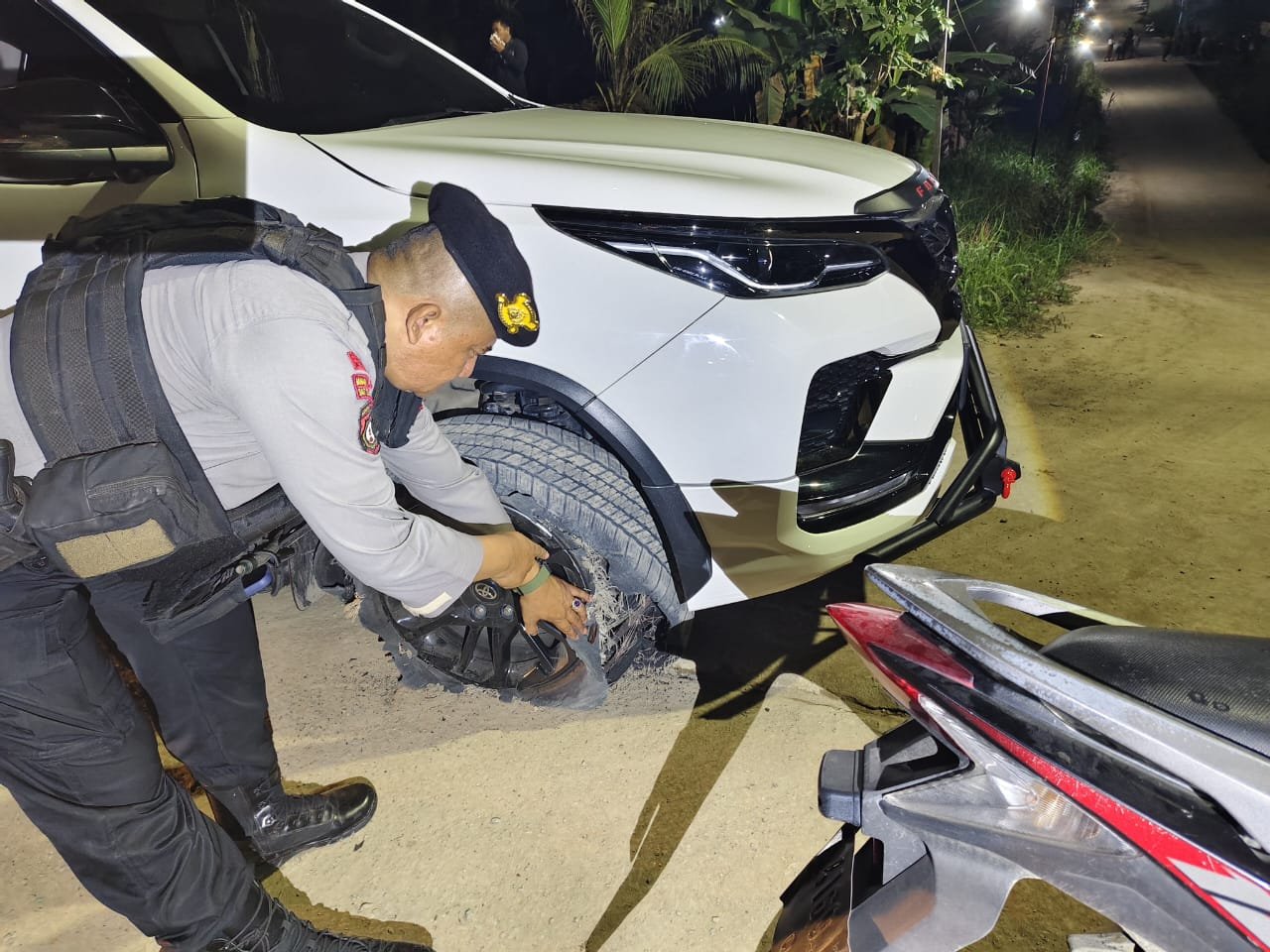 Keterangan Gambar : Polisi saat mengamankan kan mobil Fortuner, Rabu [16/10/24]