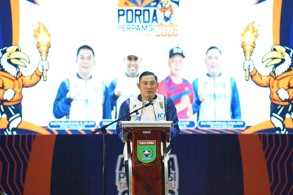 Tanah Bumbu, Borneopos.com - Bupati Tanah Bumbu, Andi Rudi Latif, melalui Asisten Pemerintahan dan Kesejahteraan Rakyat, M. Putu Wisnu Wardhana, resmi membuka Pekan Olahraga Daerah (PORDA) Persatuan Perusahaan Air Minum Seluruh Indonesia (PERPAMSI) se-Kalimantan Selatan Tahun 2026 di Gedung Mahligai Aksi Merah Putih, Kapet, Jumat (17/4/2026).