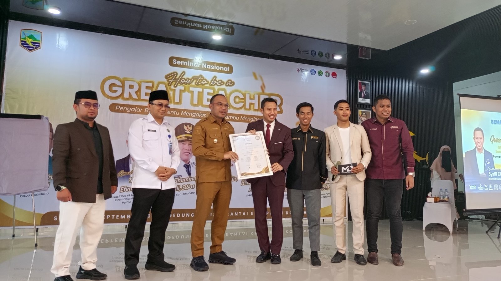 Acara seminar nasional yang dilaksanakan oleh Teacher Preneur Nasional bekerjasama dengan kantor kementrian agama kotabaru, yang dihadiri Wakil Bupati dan Kepala Kantor Kementerian Agama Kotabaru.