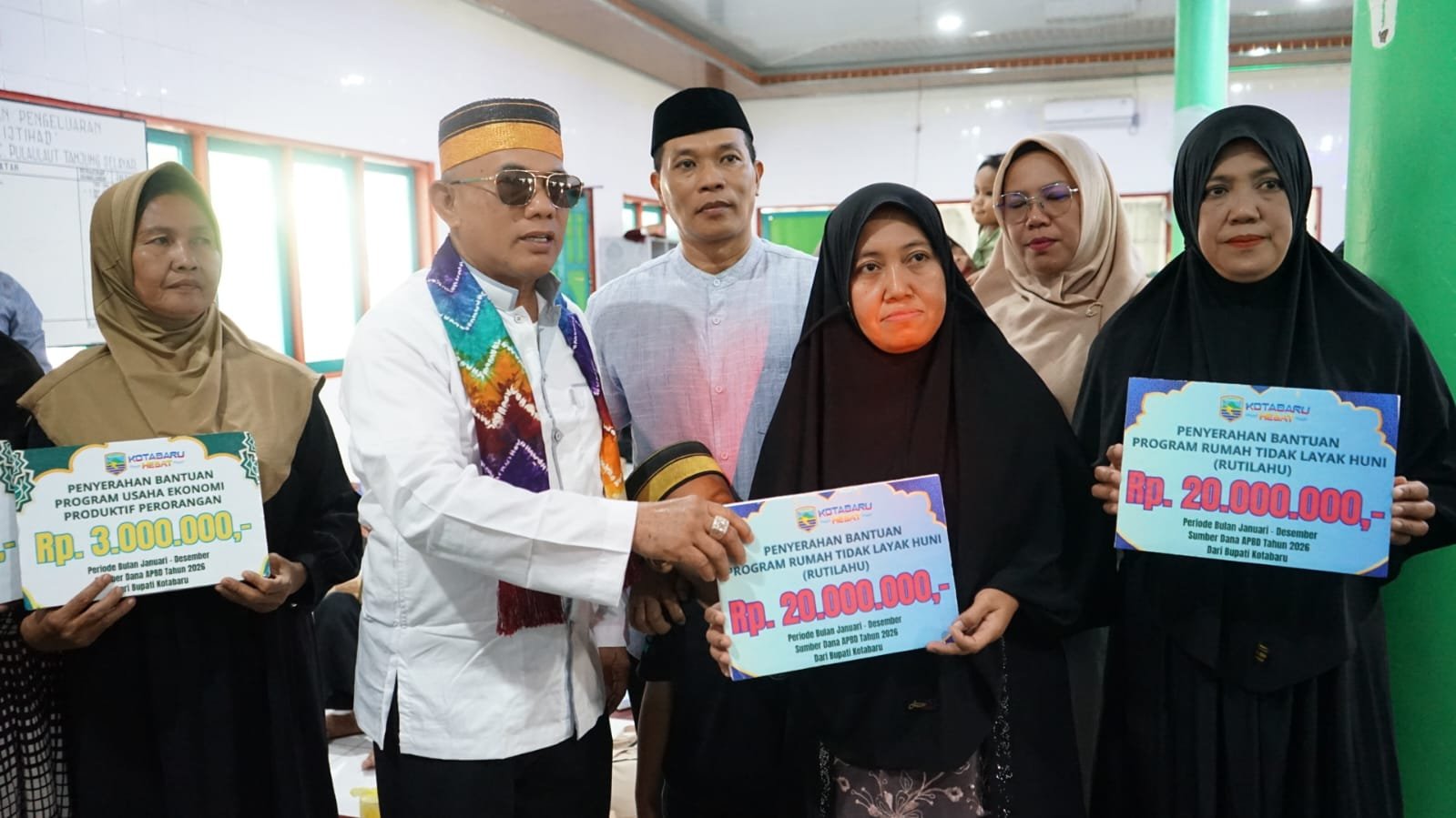 Selain bersilaturahmi, pemerintah daerah juga menyerahkan sejumlah bantuan secara simbolis. Bantuan tersebut meliputi insentif bagi guru Taman Pendidikan Al-Qur’an dari Bagian Kesra Setda Kotabaru, bantuan usaha ekonomi produktif dan program rumah tidak layak huni dari Dinas Sosial, serta bingkisan untuk balita, remaja putri, dan ibu hamil dari Dinas Kesehatan melalui Puskesmas Tanjung Selayar.