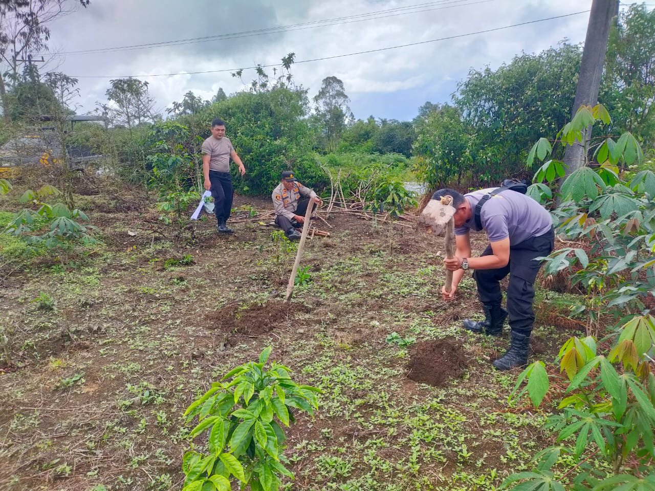 Samosir, Borneopos.com – Dalam mendukung program ketahanan pangan yang sejalan dengan Asta Cita Presiden Republik Indonesia, Polsek Pangururan mengambil langkah nyata membantu warga di Desa Sijambur Kecamatan Ronggurnihuta Kabupaten Samosir. Kapolsek Pangururan IPTU Bangun Tua Dalimunthe bersama anggotanya turun langsung ke lapangan untuk mempersiapkan lubang tanam di lahan milik Bapak Ara Simbolon.