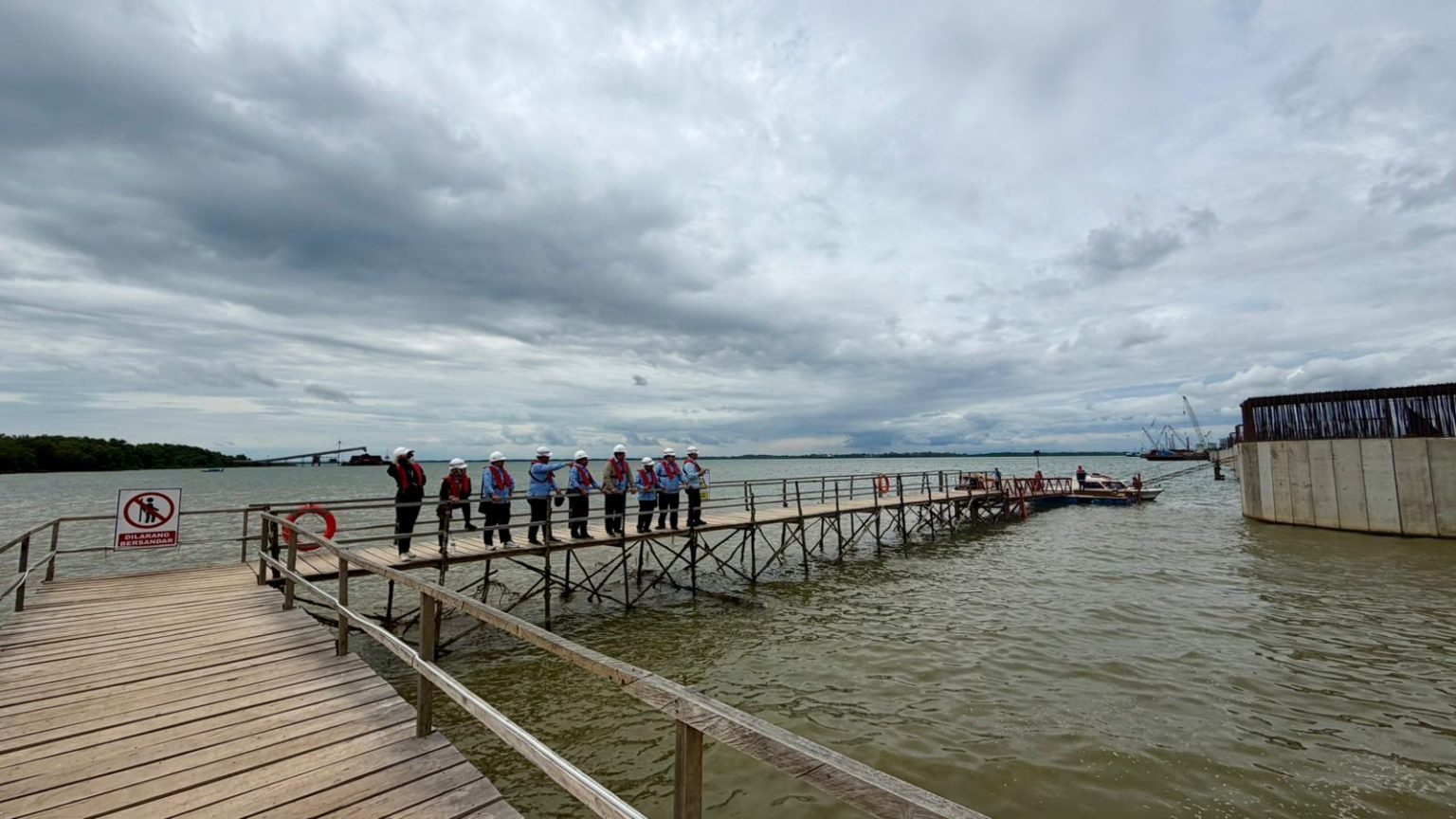 Keterangan Gambar : TAG saat berkunjung ke lokasi proyek pembangunan jembatan Tanah Bumbu-Kotabaru, Selasa (16/12/2025).