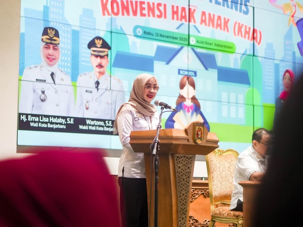 Keterangan Gambar : Bimtek Konvensi Hak Anak (KHA) Tahun 2025 di Aula Gawi Sabarataan Pemerintah Kota Banjarbaru, Rabu (12/11/2025).).