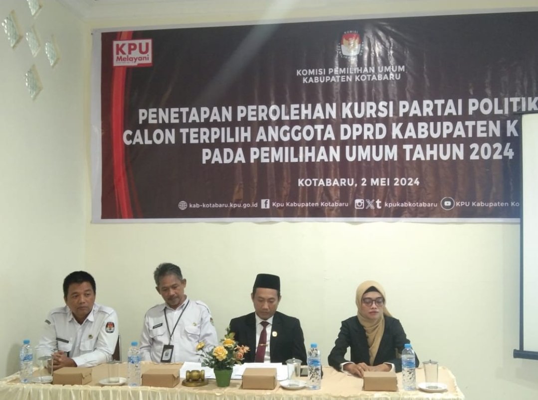 Komisi Pemilihan Umum (KPU) Kotabaru menggelar rapat pleno penetapan calon terpilih anggota Dewan Perwakilan Rakyat Daerah (DPRD) Kotabaru, Kamis (2/5/2024) di Hotel Galery di Kotabaru.