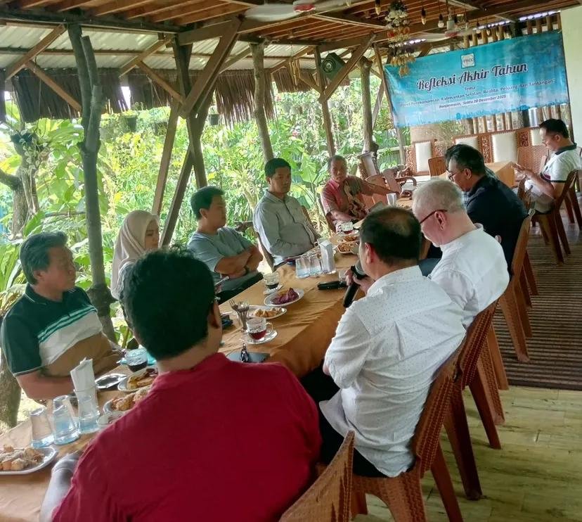 Banjarmasin, Borneopos.com - Sejumlah pengusaha yang tergabung dalam DPP APINDO (Asosiasi Pengusaha Indonesia) Kalimanatan Selatan, melakukan refleksi dan evaluasi terkait realitas, peluang dan tantangan berusaha di Kalimantan Selatan sepanjang tahun 2025, bertempat di Rumah Alam Sungai Andai, Banjarmasin , Sabtu (20/12/2025).