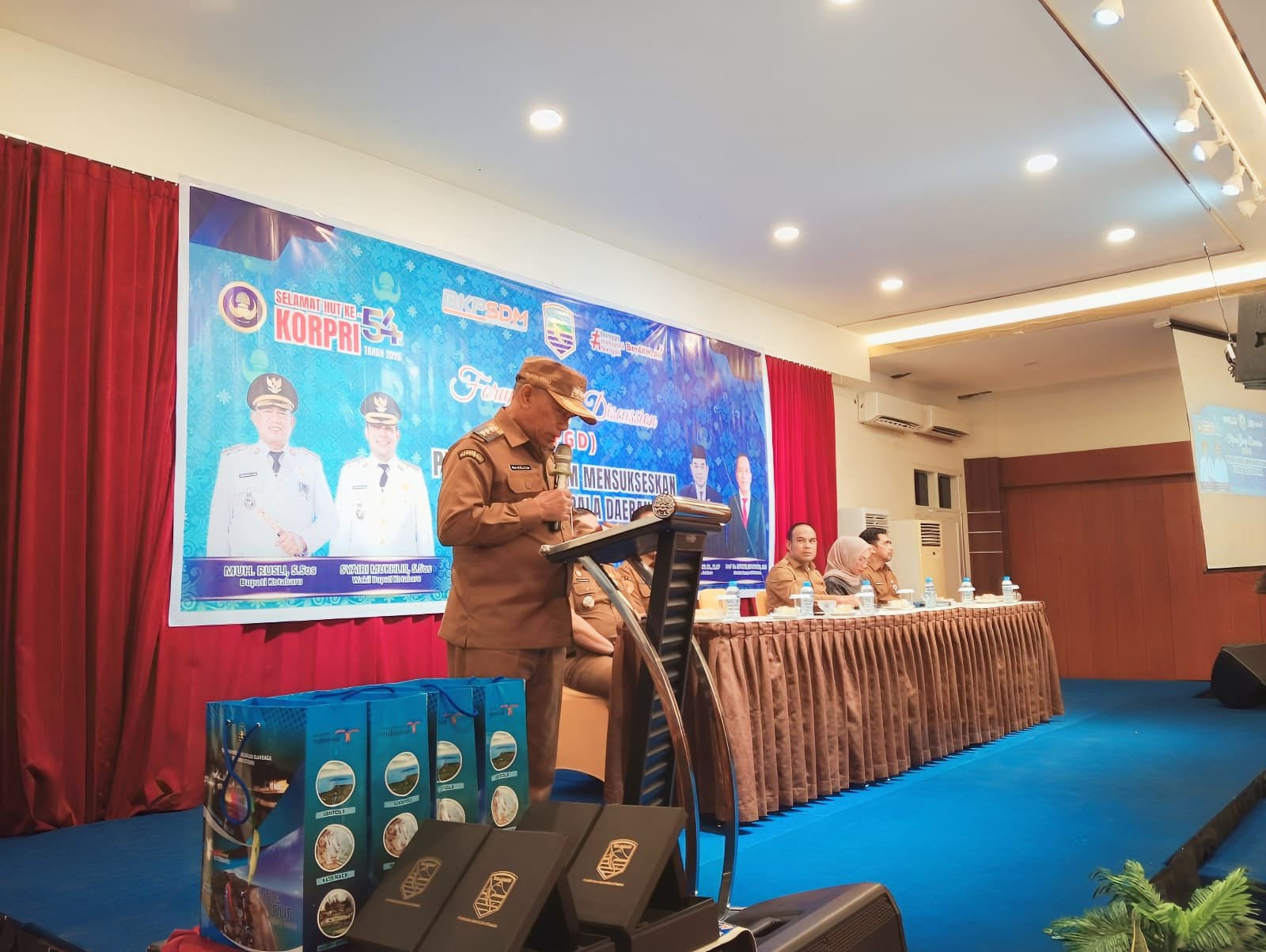 Kotabaru, Borneopos.com – Bupati Kotabaru H. Muhammad Rusli, S.Sos., secara resmi membuka kegiatan Focus Group Discussion (FGD) dengan tema “Peran ASN dalam Mewujudkan Visi Misi Kepala Daerah”, yang dirangkaikan dengan peringatan Hari Ulang Tahun Korps Pegawai Republik Indonesia (Korpri) ke-54 Tahun 2025, Senin (15/12/2025).