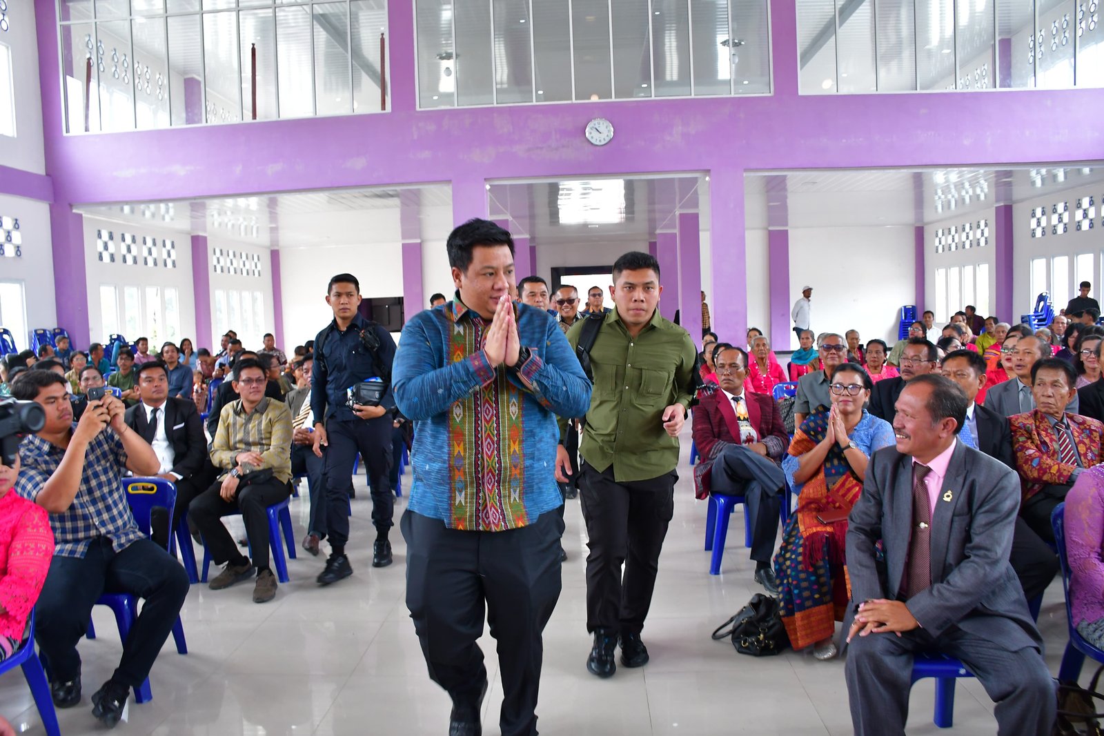 Keterangan Gambar : Bupati Samosir Vandiko Gultom saat tiba di Sopo Bolon Pangurùran, Minggu (19/01/25)