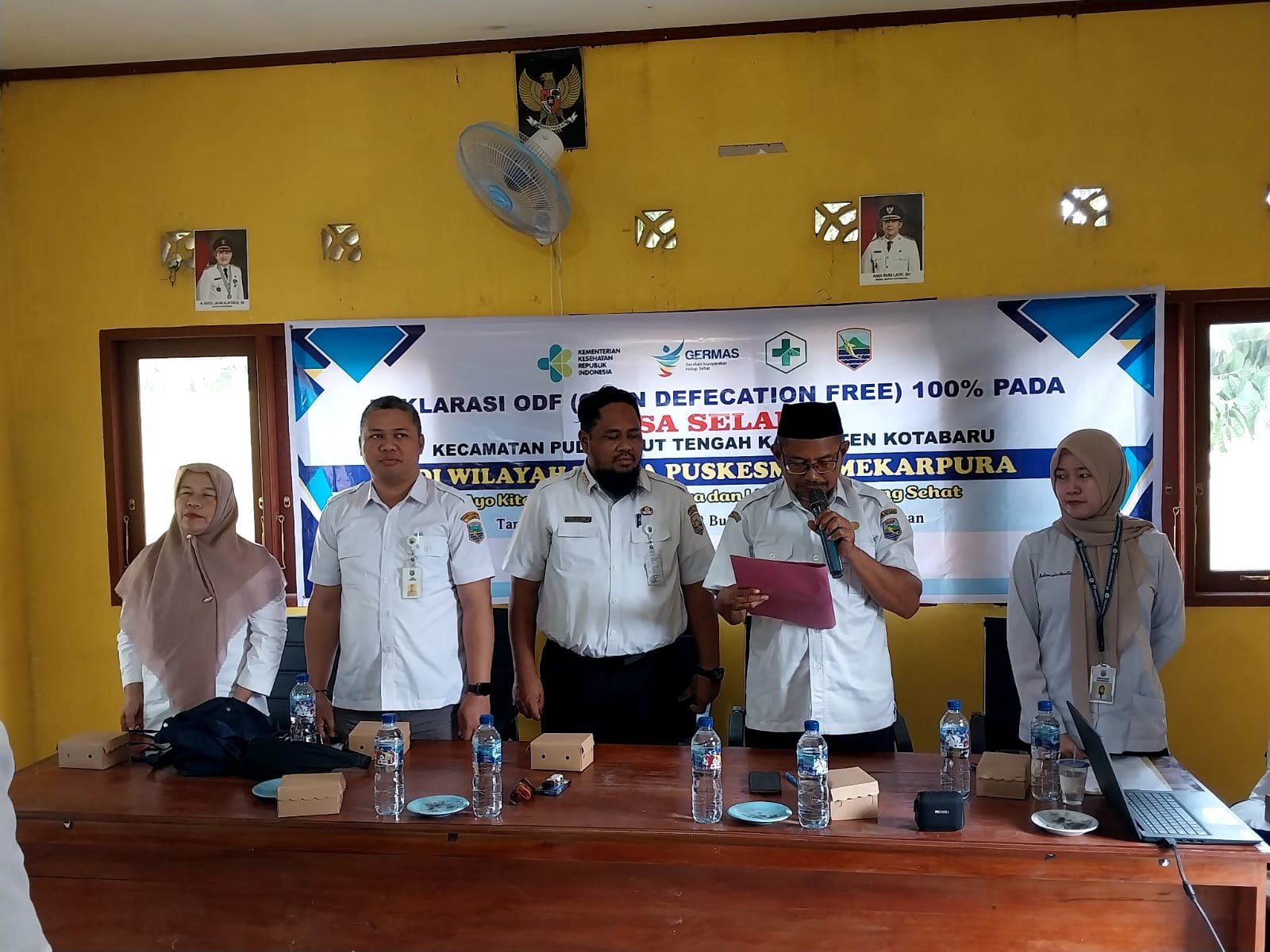 Kotabaru, Borneo Pos -- Tingkatkan kualitas kesehatan warganya, Camat Pulau Laut Tengah menggandeng Dinas Kesehatan Kabupaten Kotabaru menggelar Deklarasi "Open Defecation Free" (ODF) 100% pada Desa Selaru, Rabu (19/2/2025) di Kantor Desa Selaru Kecamatan Pulau Laut Tengah, Kabupaten Kotabaru.