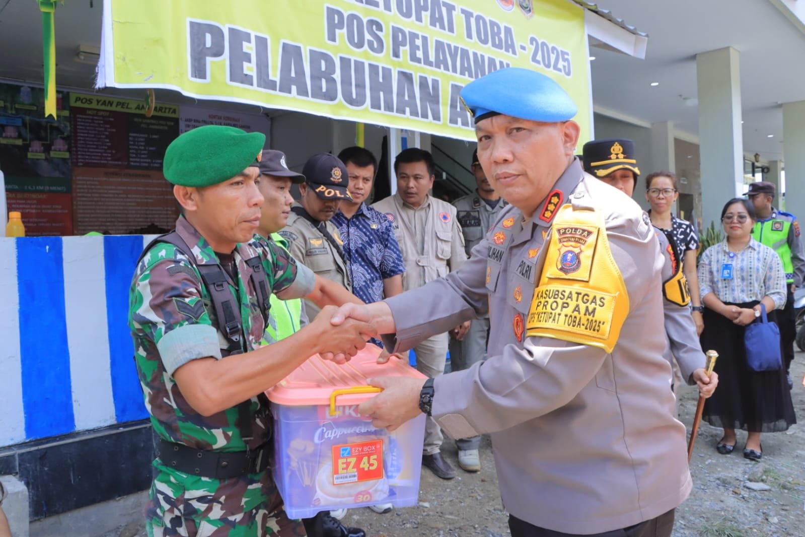 Samosir, Borneopos.com - Direktur Samapta Polda Sumatera Utara, Kombes Pol Dr. Dwi Tunggal Jaladri, S.H., S.I.K., M.Hum, bersama Kabid Propam Polda Sumatera Utara, Kombes Pol Julihan Muntaha, S.I.K., melakukan pengecekan dan monitoring Pos Pelayanan (Posyan) Operasi Ketupat Toba 2025 di wilayah hukum Polres Samosir, Kamis (3/4/2025).