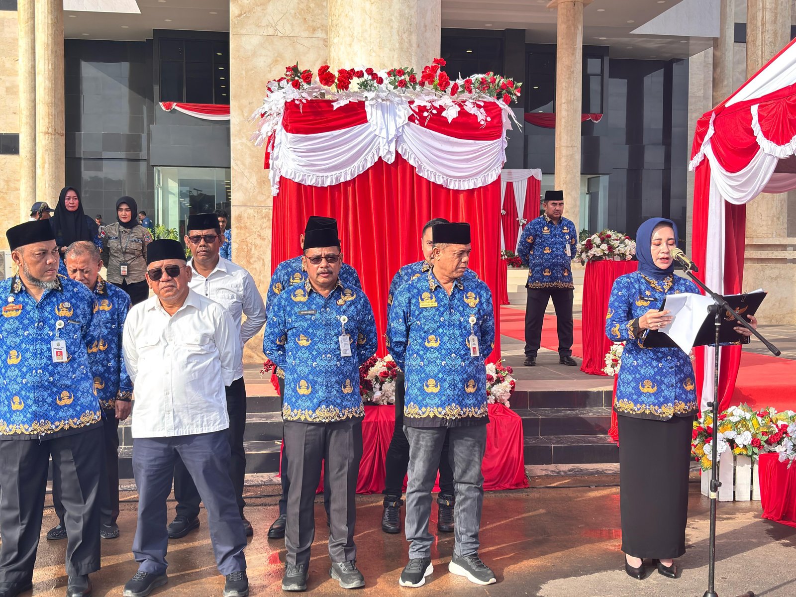 Keterangan Gambar : Pj Sekda Kotabaru saat membacakan amanat Presiden RI pada hari Otonomi Daerah ke-29 Tahun 2025, Senin (28/4/2025).