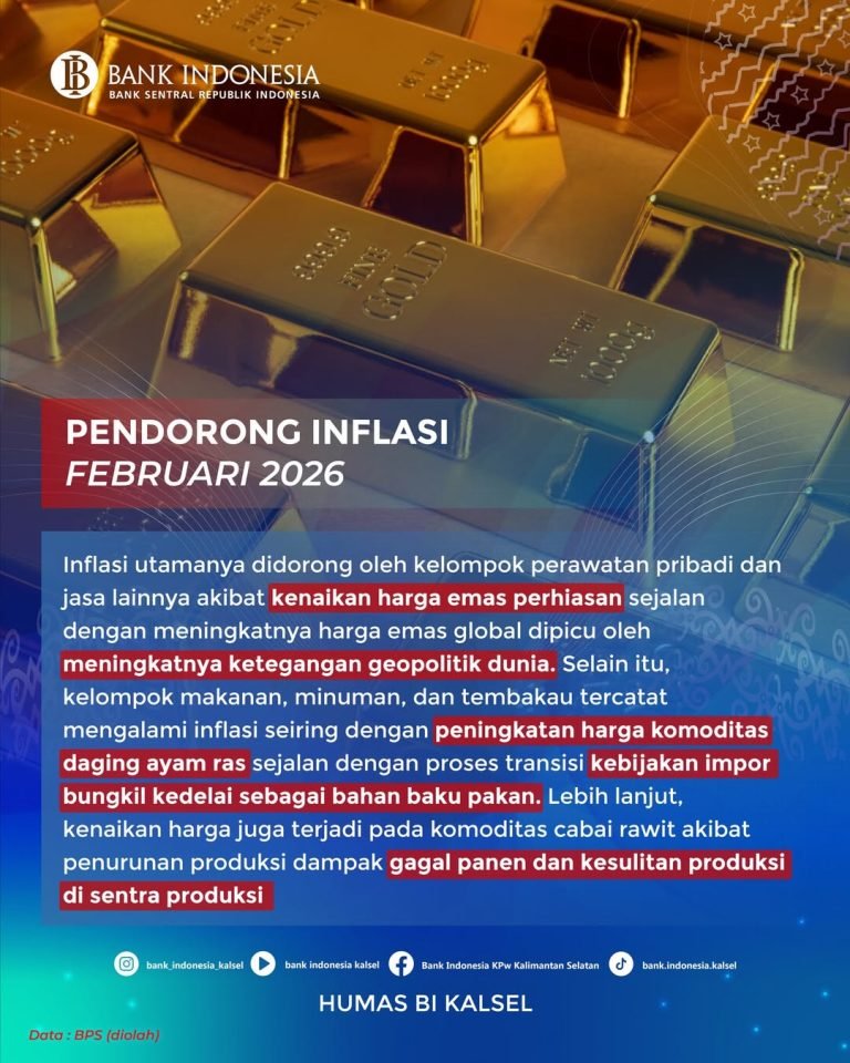 - Inflasi Kalsel Februari 2026 Capai 0,86 Persen, BI Perkuat Langkah Pengendalian Harga
