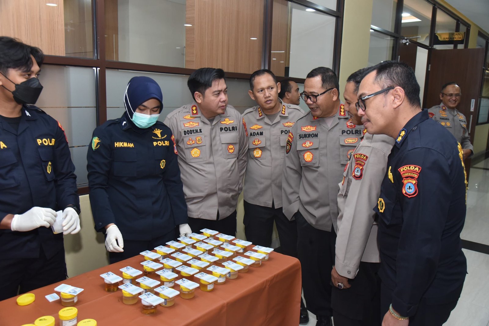 Keterangan Gambar : Personil Polda saat melaksanakan tes urine, Rabu (25/2/2026).