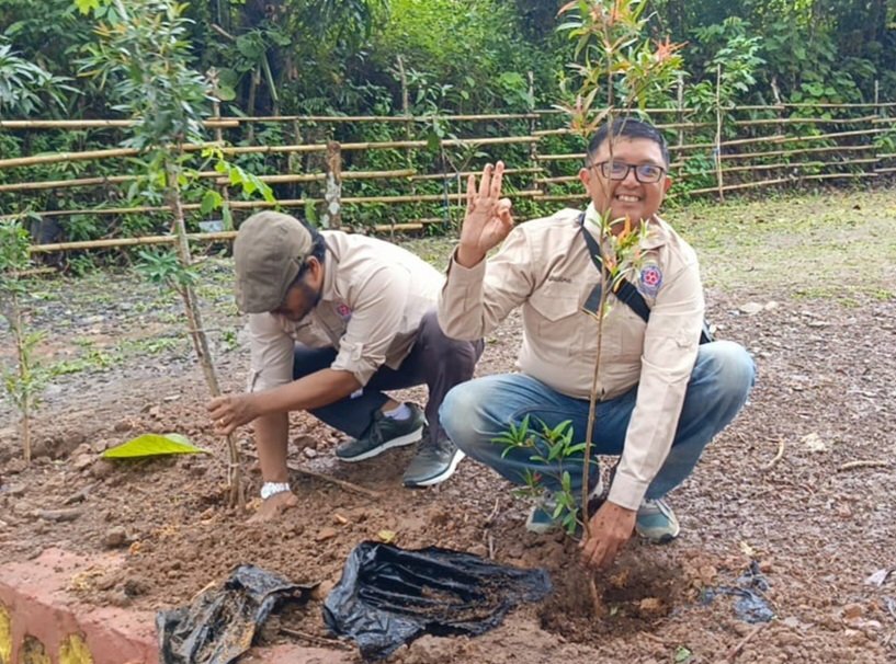 Keterangan Gambar : Kepala Dinas Pariwisata Pemuda dan Olahraga Kotabaru saat melakukan penanaman pohon di Bumi perkemahan bina banua bamega, Selasa (26/8/2025).
