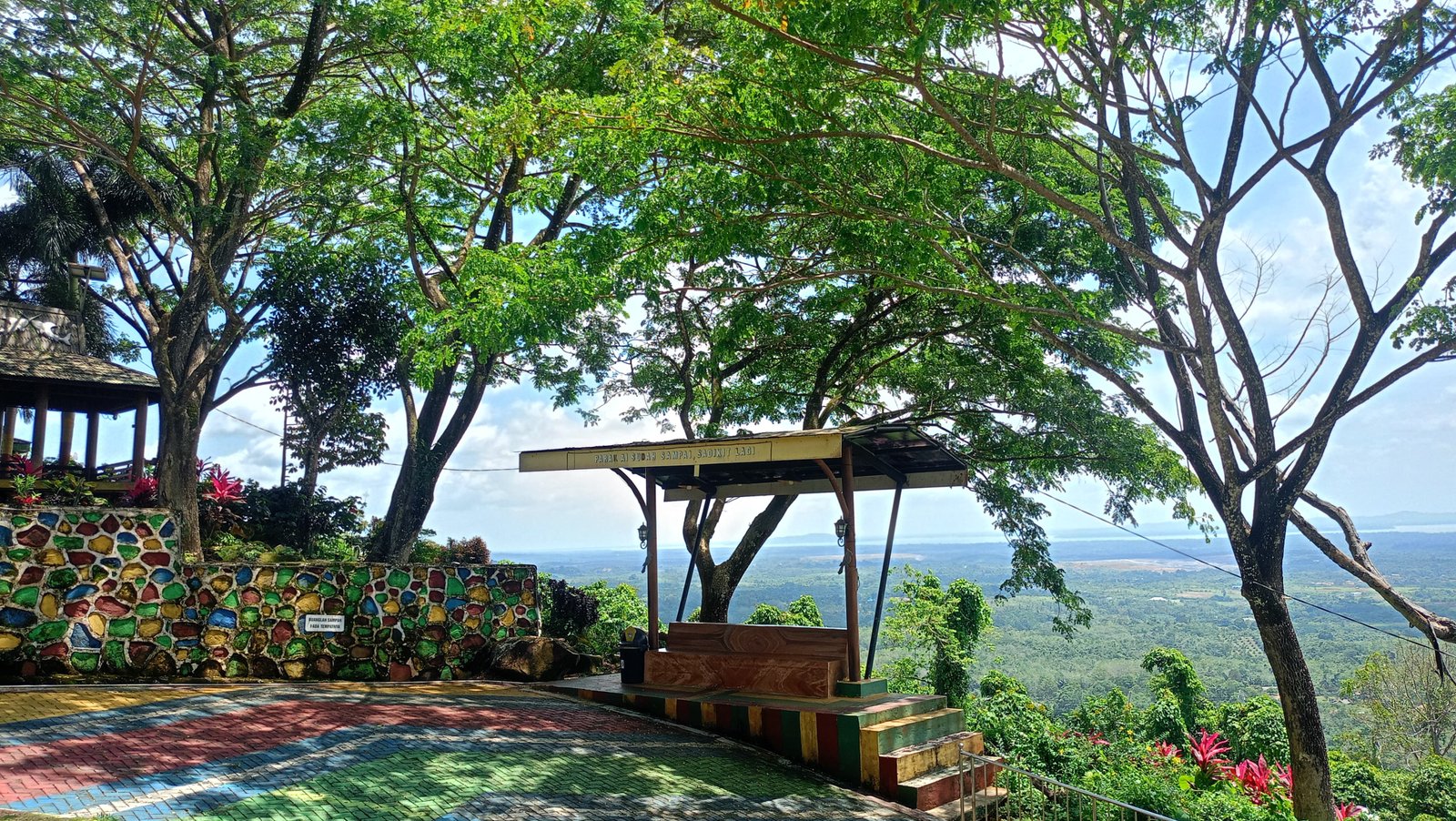 Begitu memasuki area wisata, pengunjung langsung disambut dinding bergambar karya seniman lokal. Lukisan-lukisan tersebut menampilkan suasana Hutan Meranti hingga destinasi wisata lainnya di Kotabaru, seperti Siring Laut, Gunung Mamake dan masih banyak lagi. Kehadiran karya seni itu menjadi daya tarik tersendiri sebelum pengunjung naik menuju area puncak.
