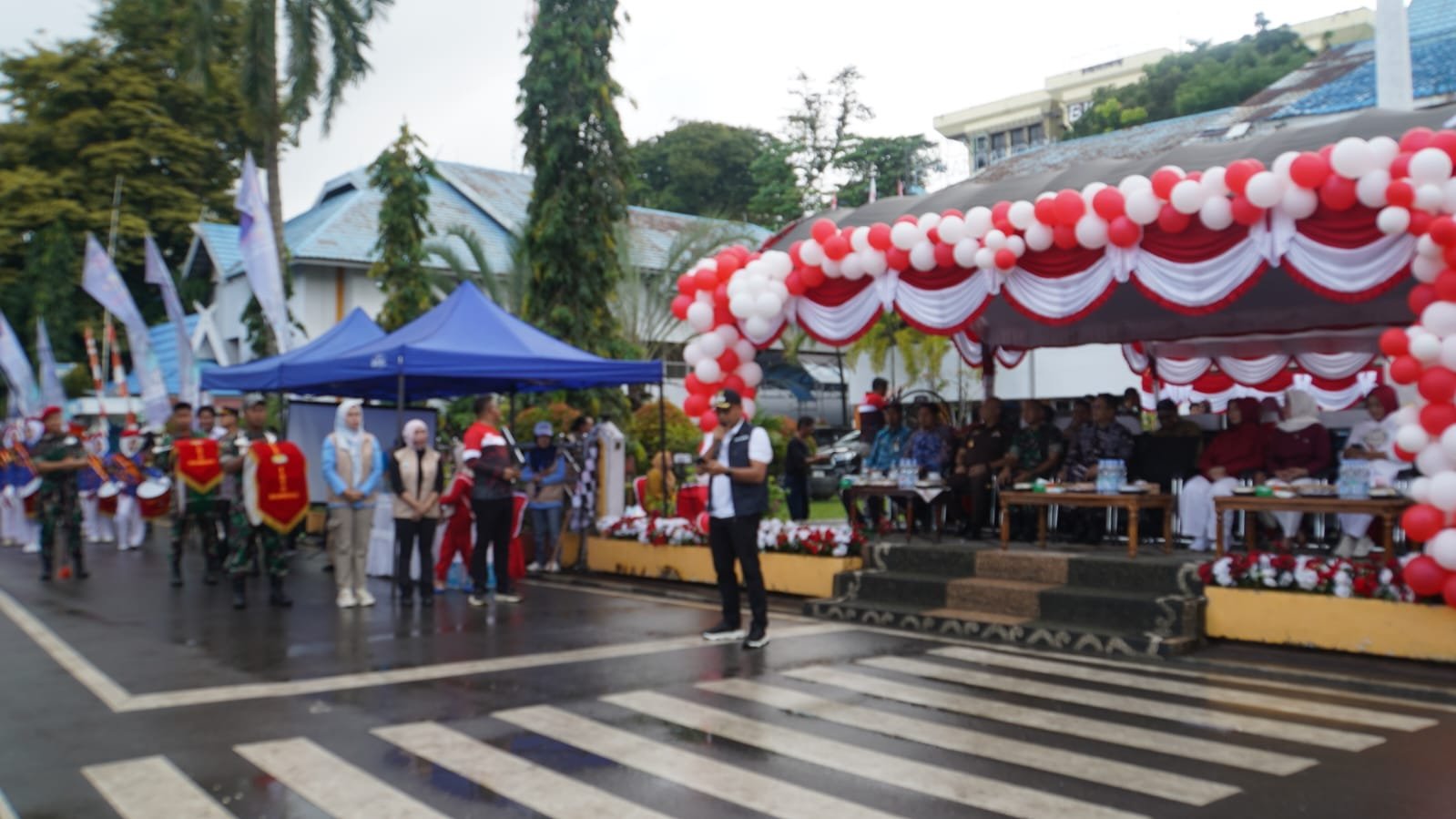 Keterangan Gambar : Forkopimda Kotabaru lepas Karnaval HUT RI ke-80, Senin (18/8/2025).
