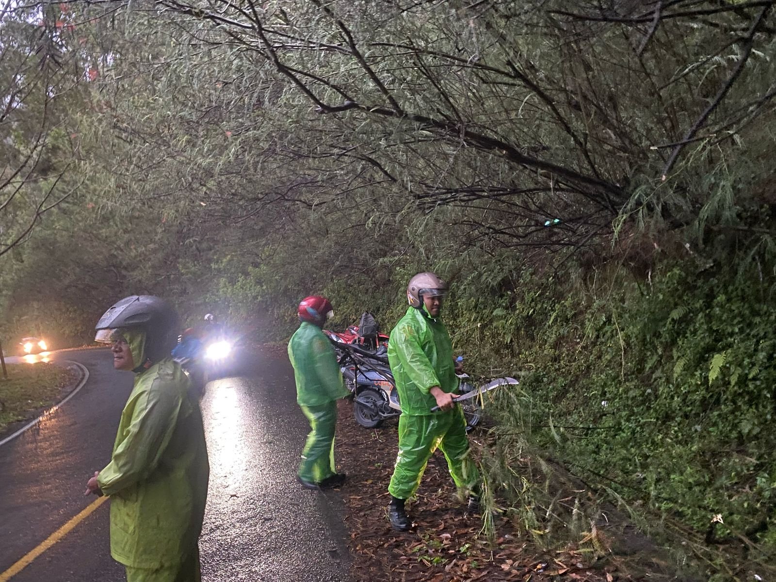 Personel Polres Samosir Sigap Bersihkan Pohon Tumbang Yang Ganggu Lalu Lintas di Tele