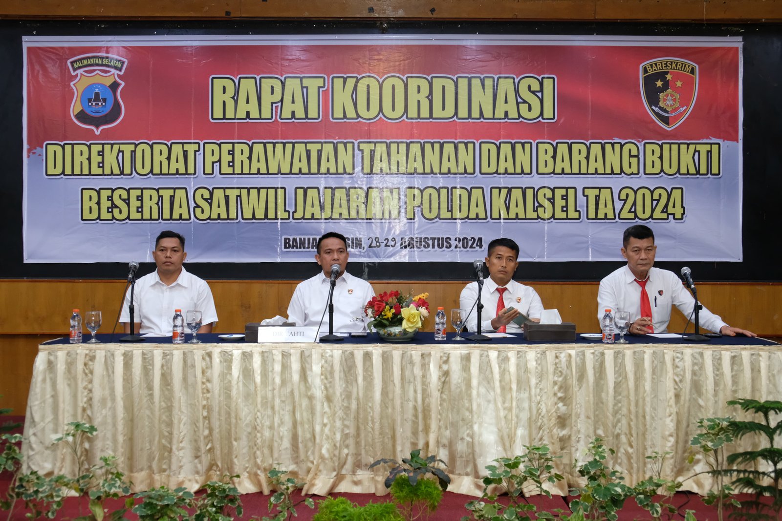 Tujuan dari rapat ini adalah untuk membahas strategi dan program kerja Direktorat Tahti dalam rangka meningkatkan efektivitas tugas-tugas kepolisian di wilayah hukum Polda Kalsel, khususnya dalam bidang perawatan tahanan dan barang bukti.