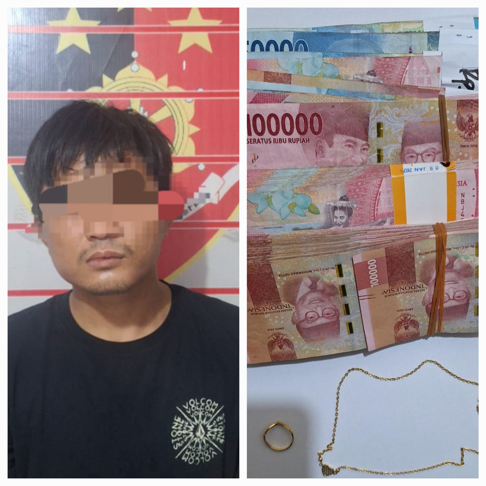Dari tangan pelaku, polisi mengamankan barang bukti berupa satu kalung emas seberat 1,8 gram, satu cincin emas seberat 1,1 gram, serta sisa uang tunai hasil penjualan perhiasan sebesar Rp32.500.000. Selain itu, alat bukti berupa rekaman CCTV berdurasi 13 detik juga turut diperoleh untuk memperkuat proses penyelidikan.