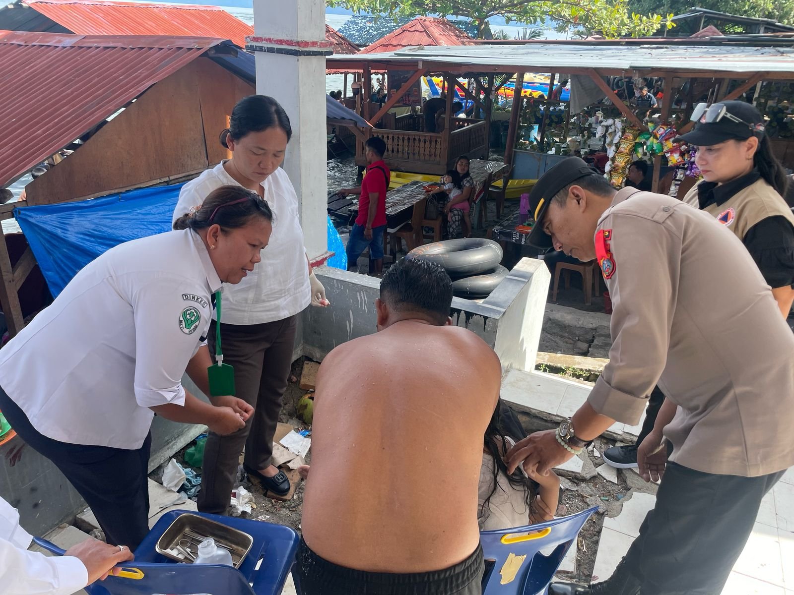 Keterangan Gambar : Tim kesehatan saat menangani korban luka di Pantai Parbaba, Jumat (4/4/2025).