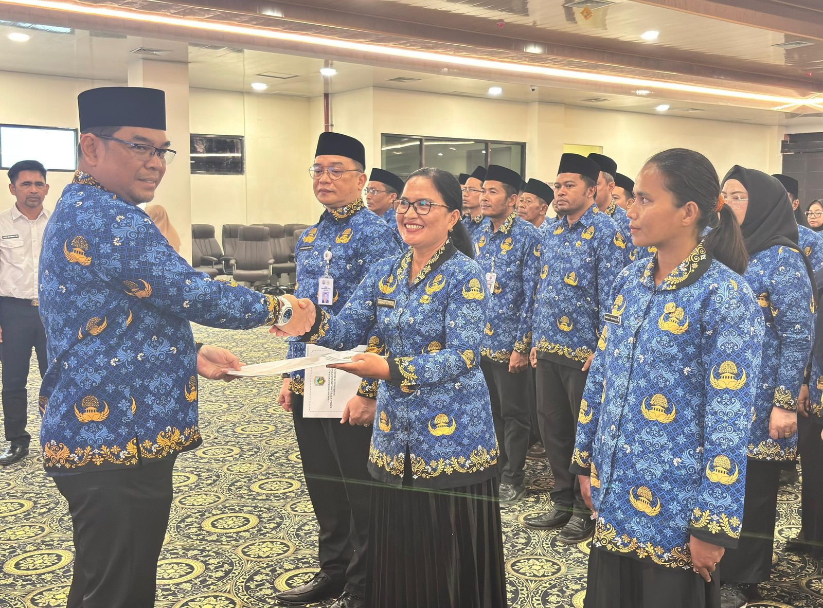 Keterangan Gambar : Sekda Kotabaru, Eka Saprudin saat melantik ratusan pejabat fungsional di Aula Bamega Kantor Bupati Kotabaru, Rabu (5/11/2025).
