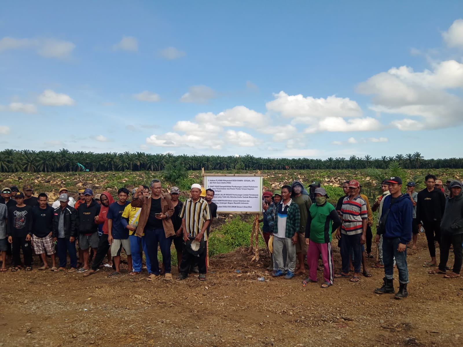 Protes dan aksi dilaksanakan oleh ratusan warga Desa Rampa Cengal dengan memblokade jalan kebun, dengan memasang portal dari kayu, pada Rabu (10/9/2025) siang.