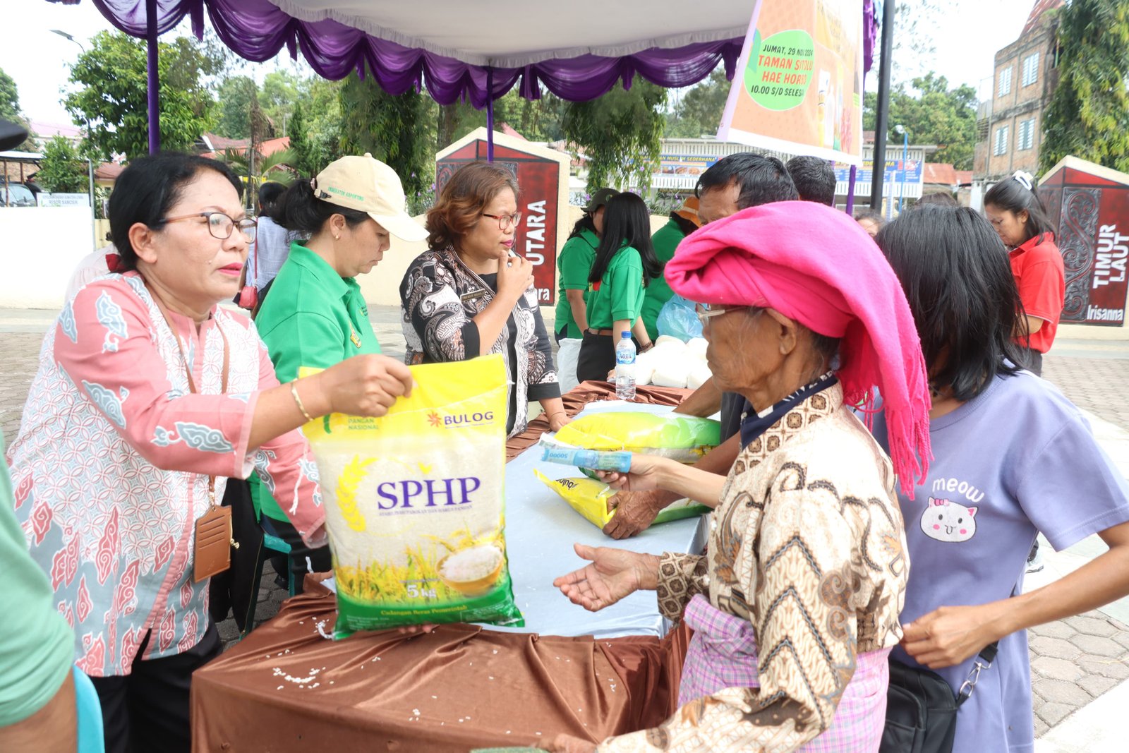 Keterangan Gambar : Warga pangururan sedang membeli beras di pasar murah, Jumat (29/11/24)