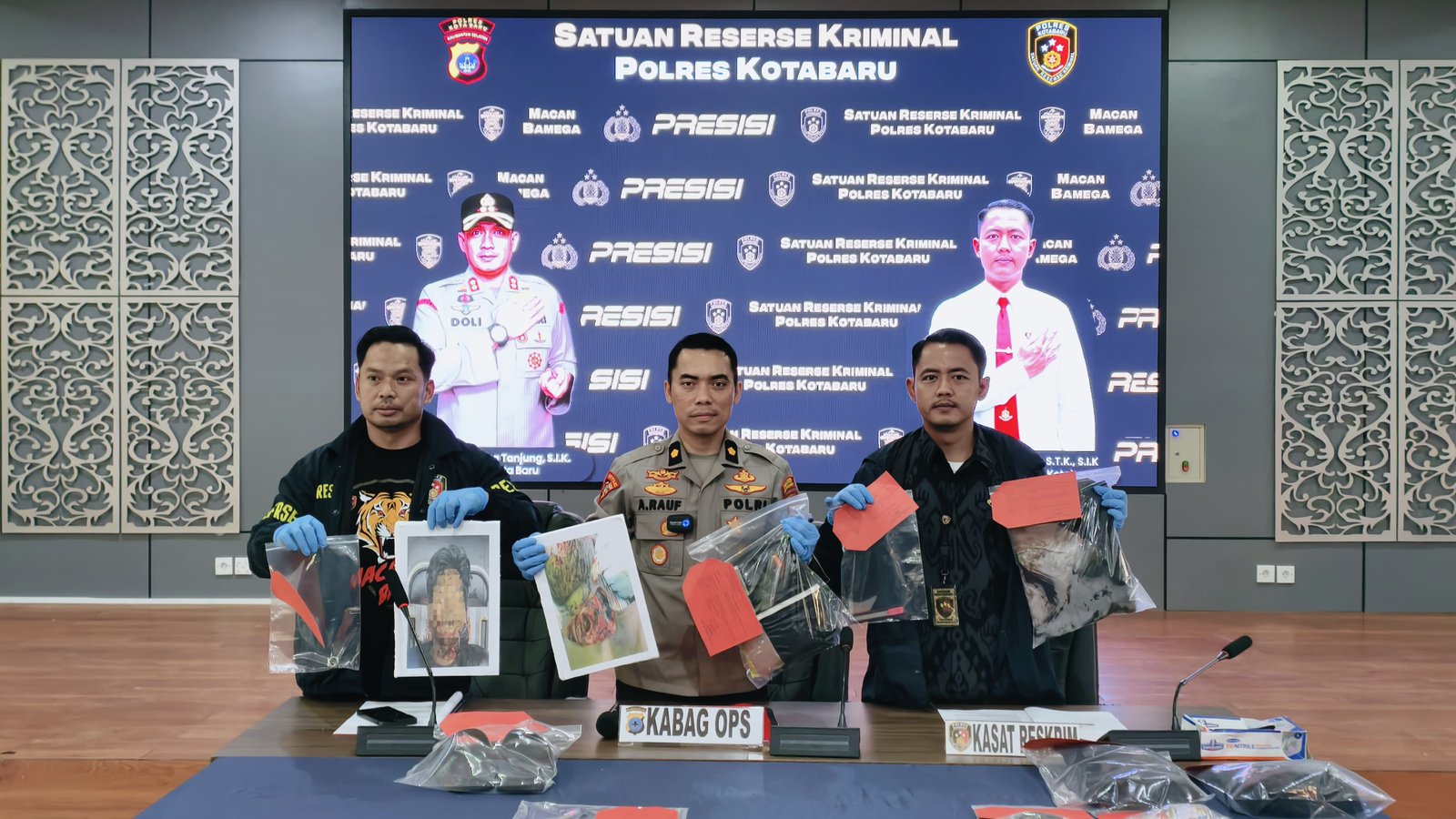 Keterangan Gambar : Tim Polres kotabaru saat menunjukan pelaku dan barang bukti kepada awak media pada pres release, Jumat (26/9/2025).