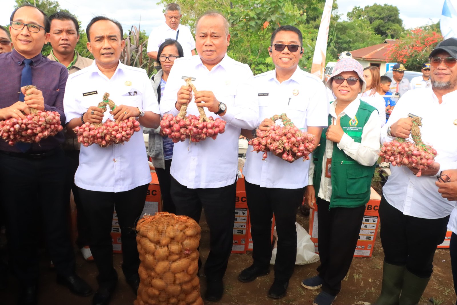 Bibit bawang merah dibagikan kepada 5 kelompok tani dilengkapi dengan pupuk organik padat 4 ton dan 10 liter pupuk organik cair per kelompok tani.
