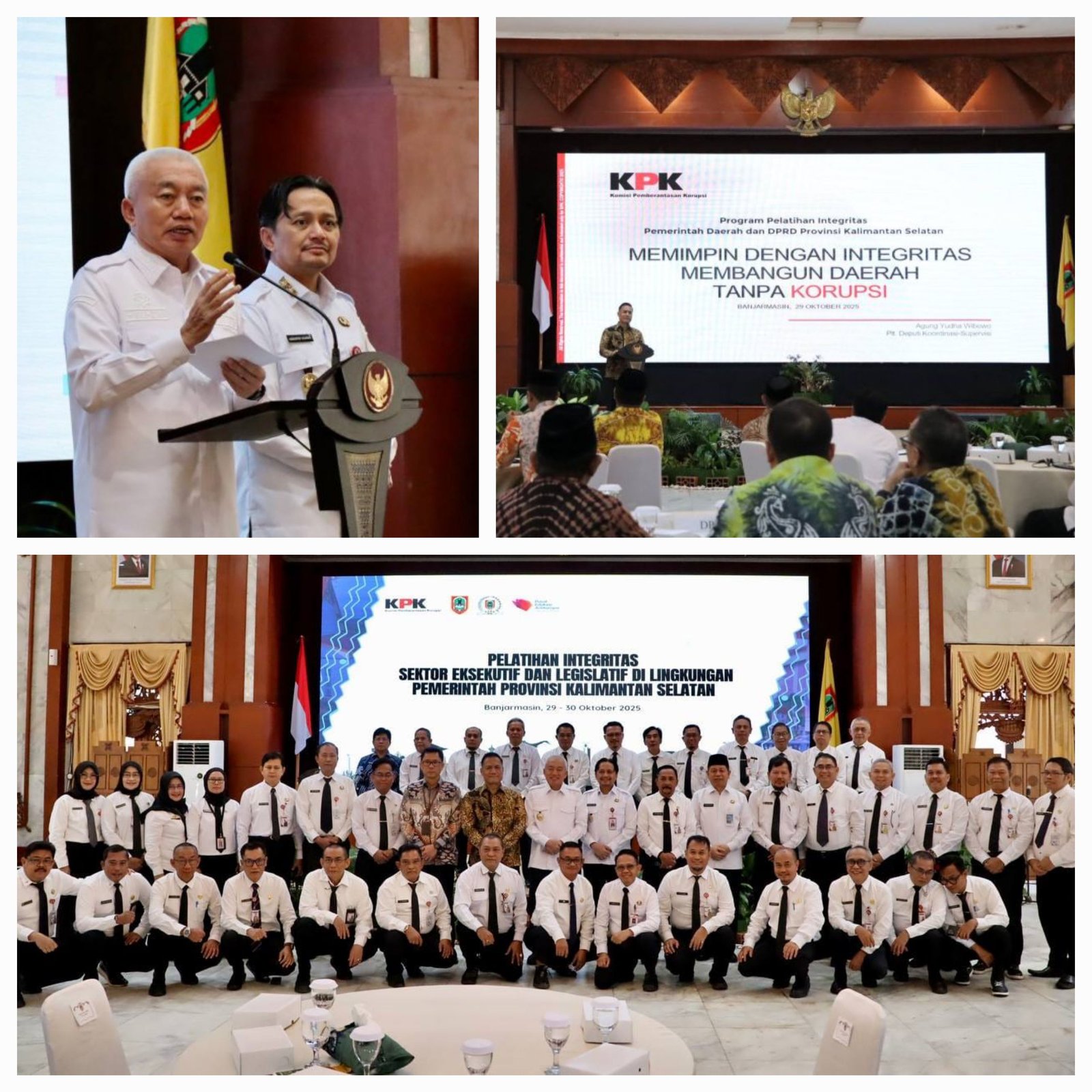 Banjarmasin, Borneopos.com - Pemerintah Provinsi Kalimantan Selatan (Kalsel) bersama DPRD Provinsi Kalsel berkomitmen memperkuat tata kelola pemerintahan yang bersih dan transparan. Komitmen tersebut diwujudkan melalui Pelatihan Integritas Sektor Eksekutif dan Legislatif yang diselenggarakan oleh Komisi Pemberantasan Korupsi (KPK) Republik Indonesia, Rabu (29/10/2025) di Banjarmasin.